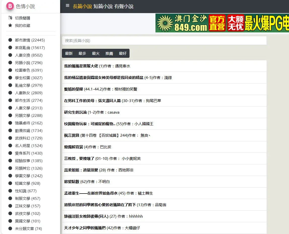 此网站主要以情色小说为核心内容,提供用户多种类的成人小说阅读体验。根据页面展示,分类明确,包括长篇小说、短篇小说、男女性向等细分领域,用户可以轻松导航至自己感兴趣的内容板块。